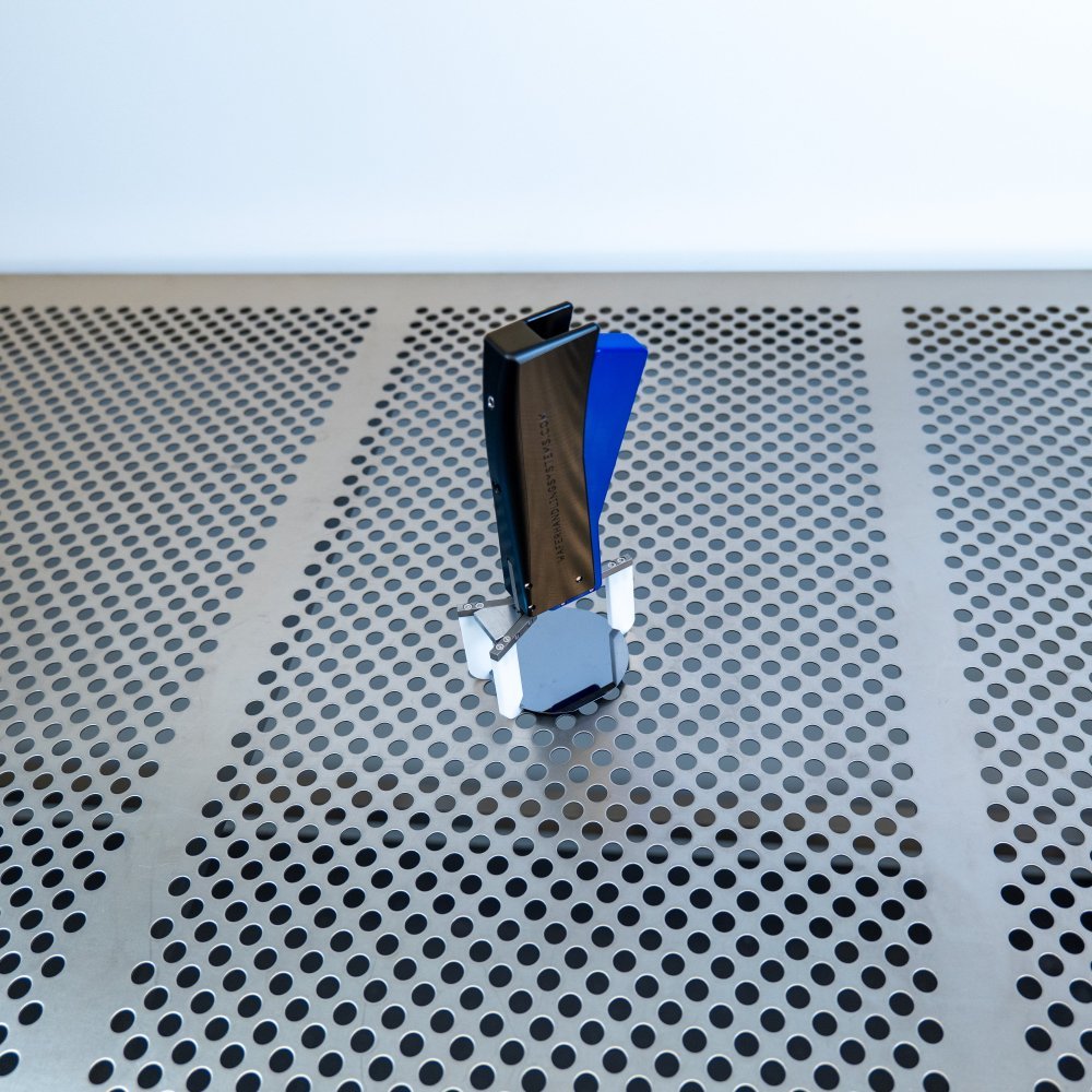 A normally closed three-point mechanical pick, designed for dedicated handling of round substrates with diameters 76 mm, specifically targeting the tangential wafer diameter. This pick is versatile, suitable for both laboratory single wafer processing and wafer rescue applications. The 50 mm height grippers are crafted from high-performance PTFE Teflon®, ensuring resistance to chemicals and high temperatures. The WHS-G3 includes a trigger with an adjustable stop mechanism, allowing for the modification of spring tension to handle compound and thin wafers. It is purposefully designed for use in ISO Class 4 cleanrooms, meeting stringent cleanliness standards. An optional tabletop pedestal holder is available to keep the handling tool organized and clean in between use.